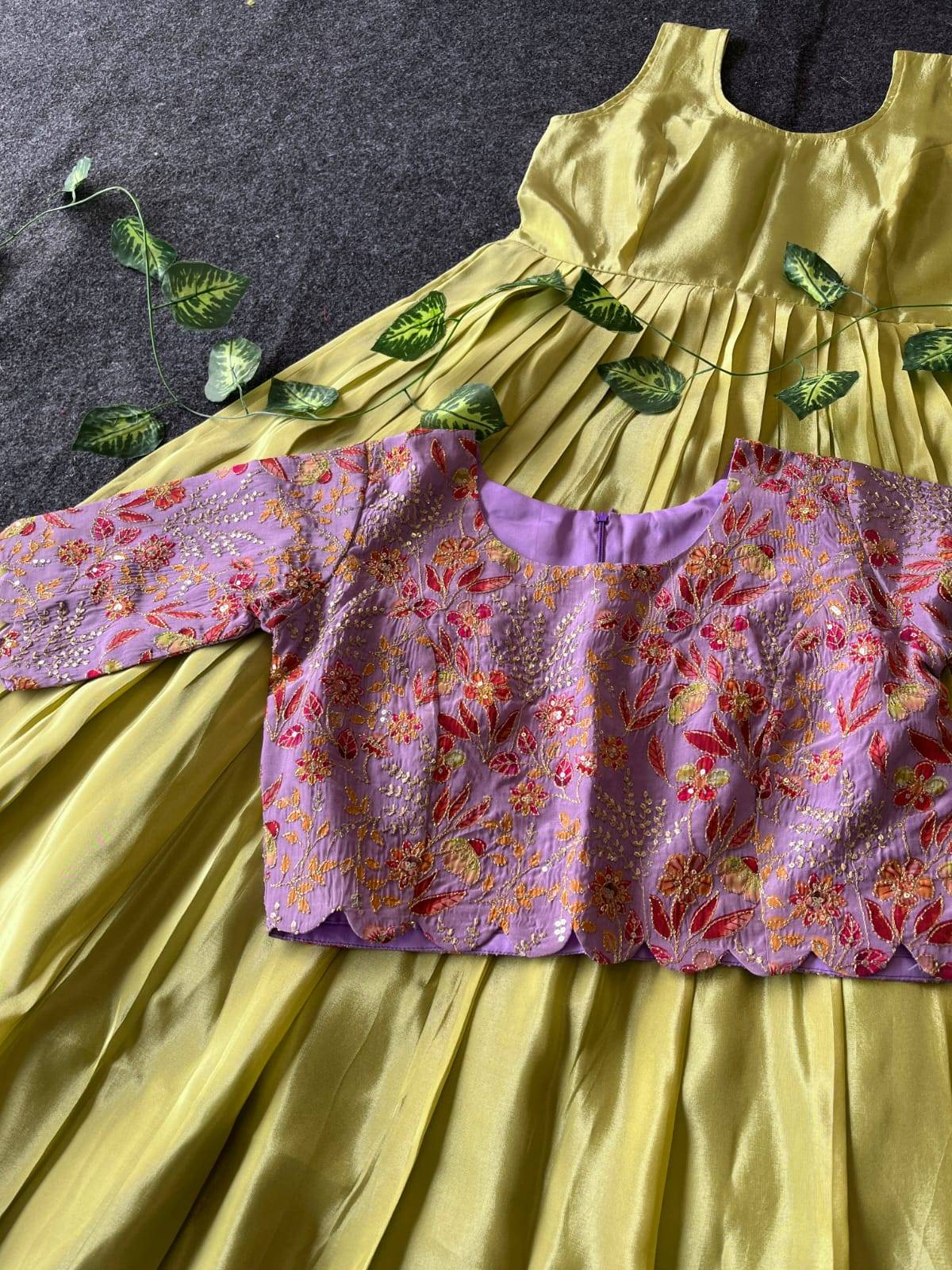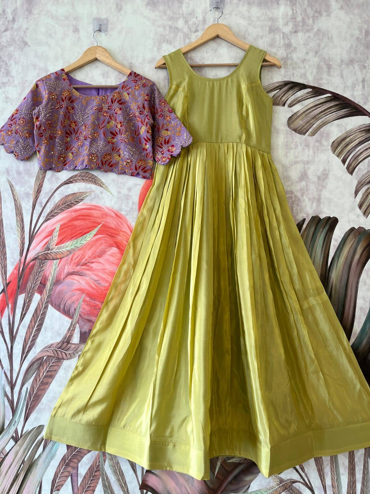 Gown :- Very soft and shiny viscose tissue fabric With canvas Flair :- 3 meter Length :- 55/56 Inner :- micro cotton