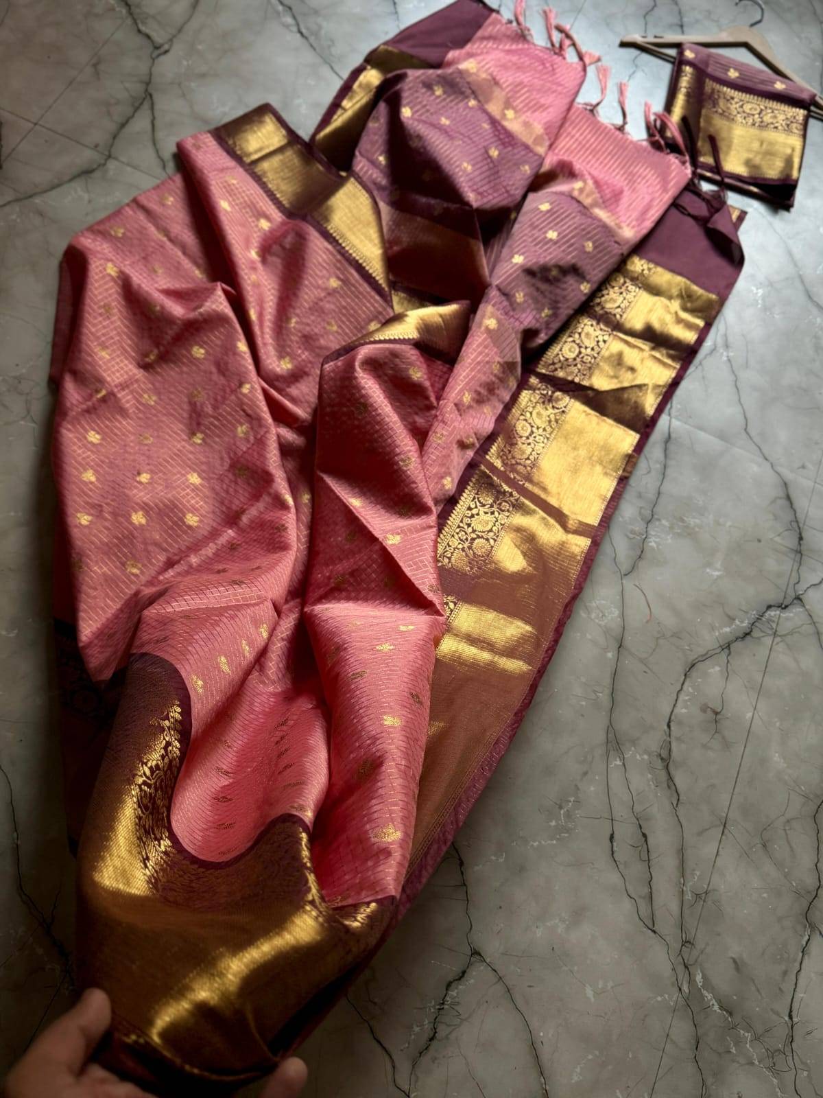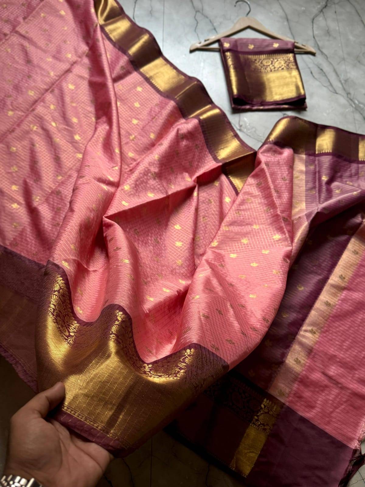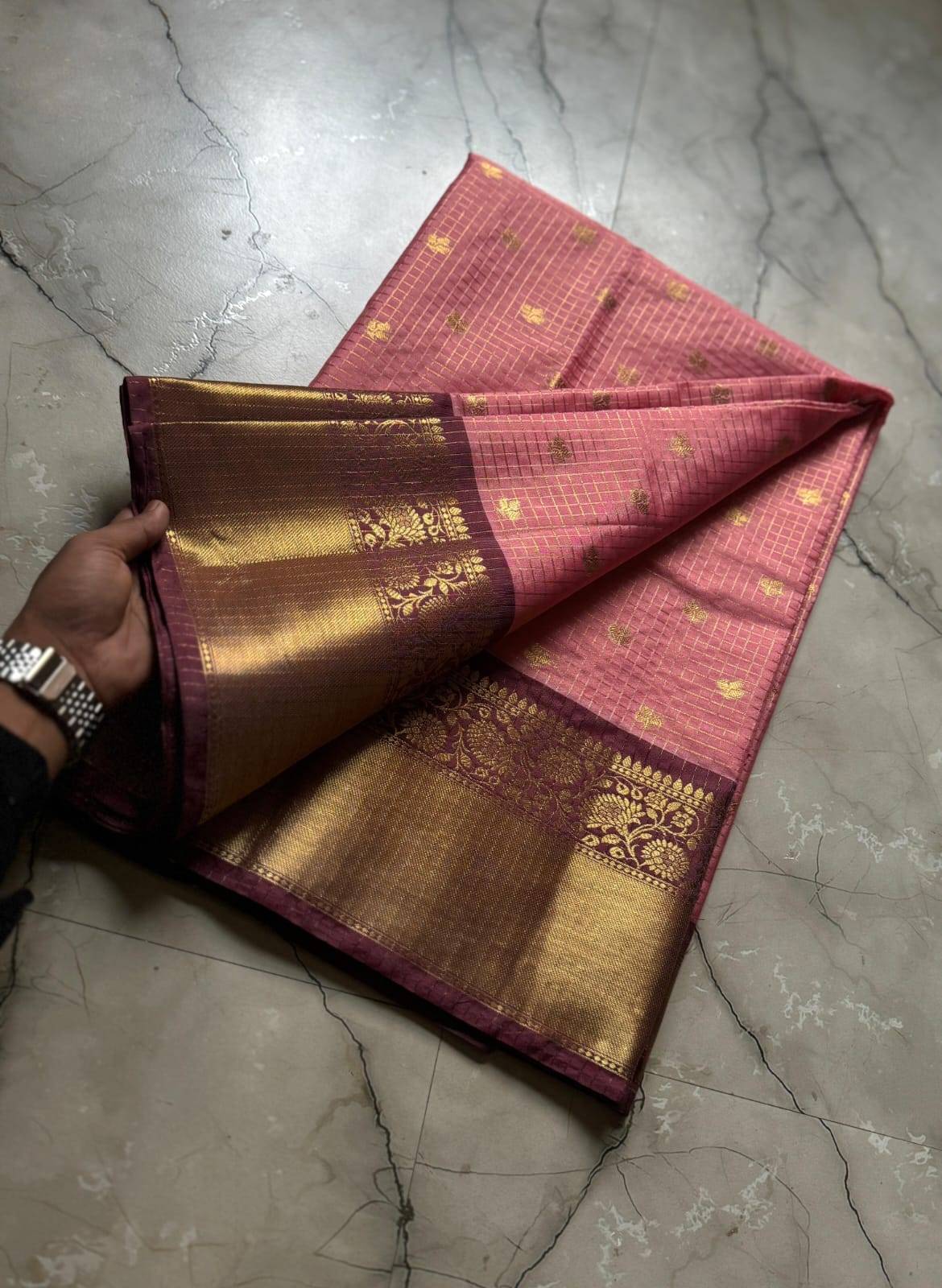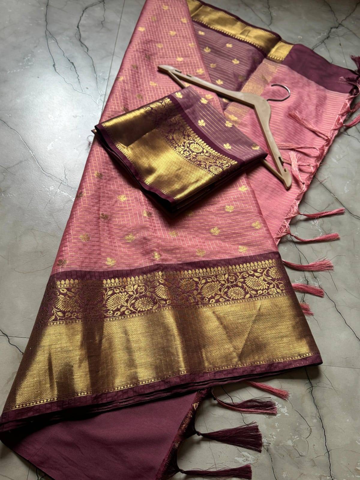 super demanding collection of vintage inspired soft semi-silk saree in checks pattern