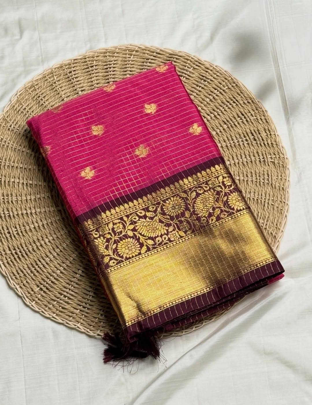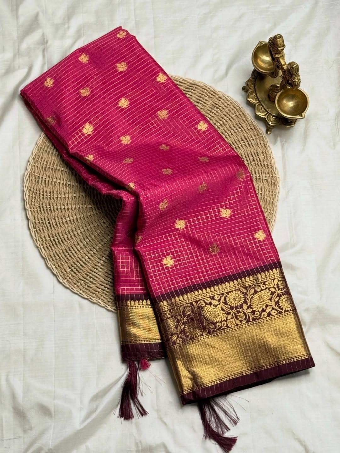 super demanding collection of vintage inspired soft semi-silk saree in checks pattern