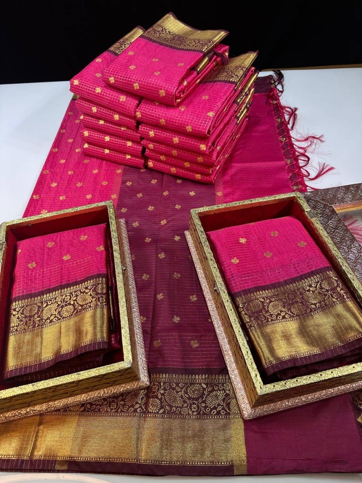 having contrast weaving kanchi border