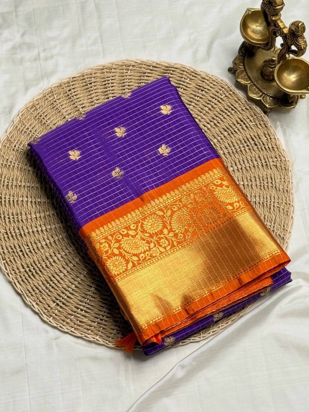 Checks Design Semi Kanchi Sarees Violet