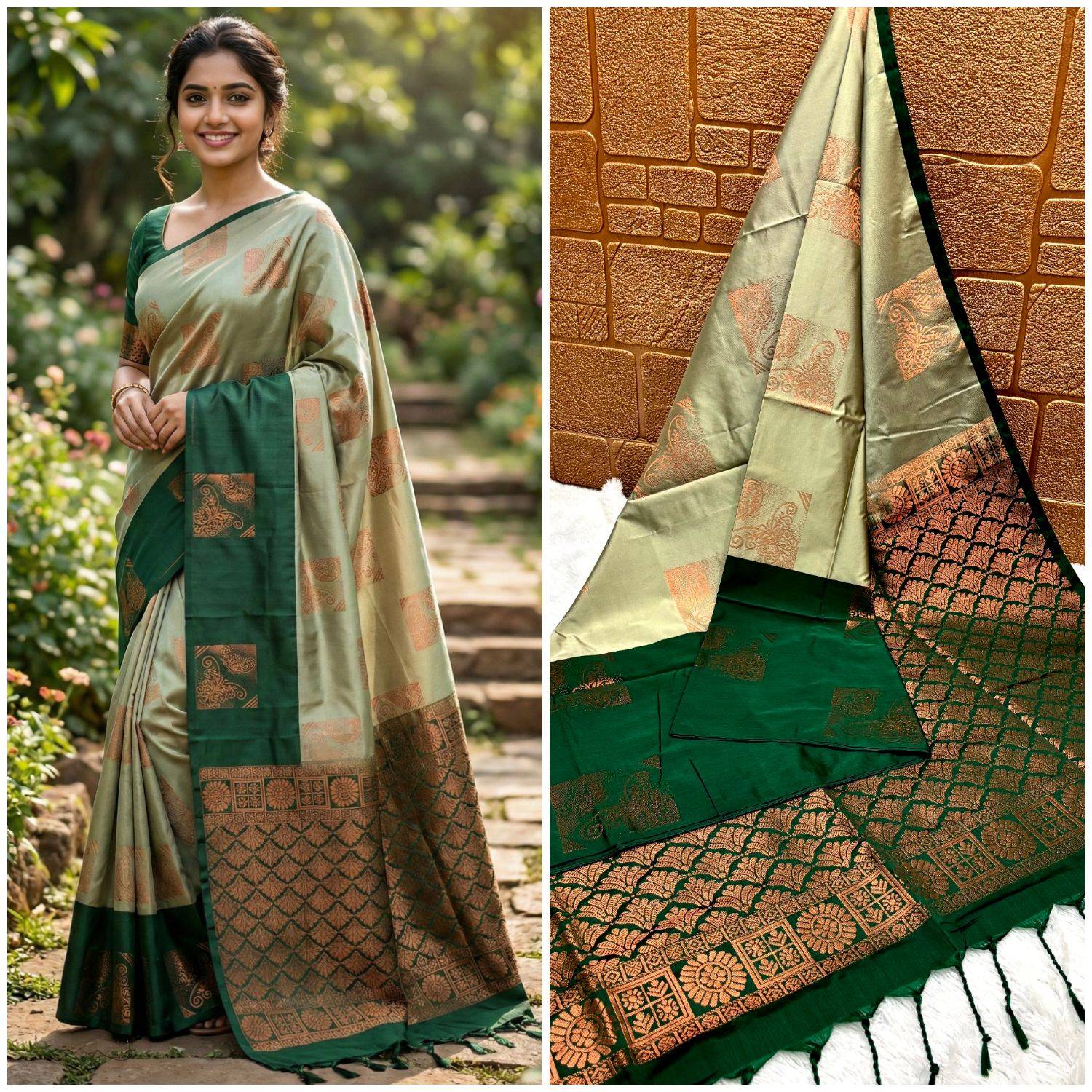 Light Green and Green Kanchipuram Elite Silk Sarees