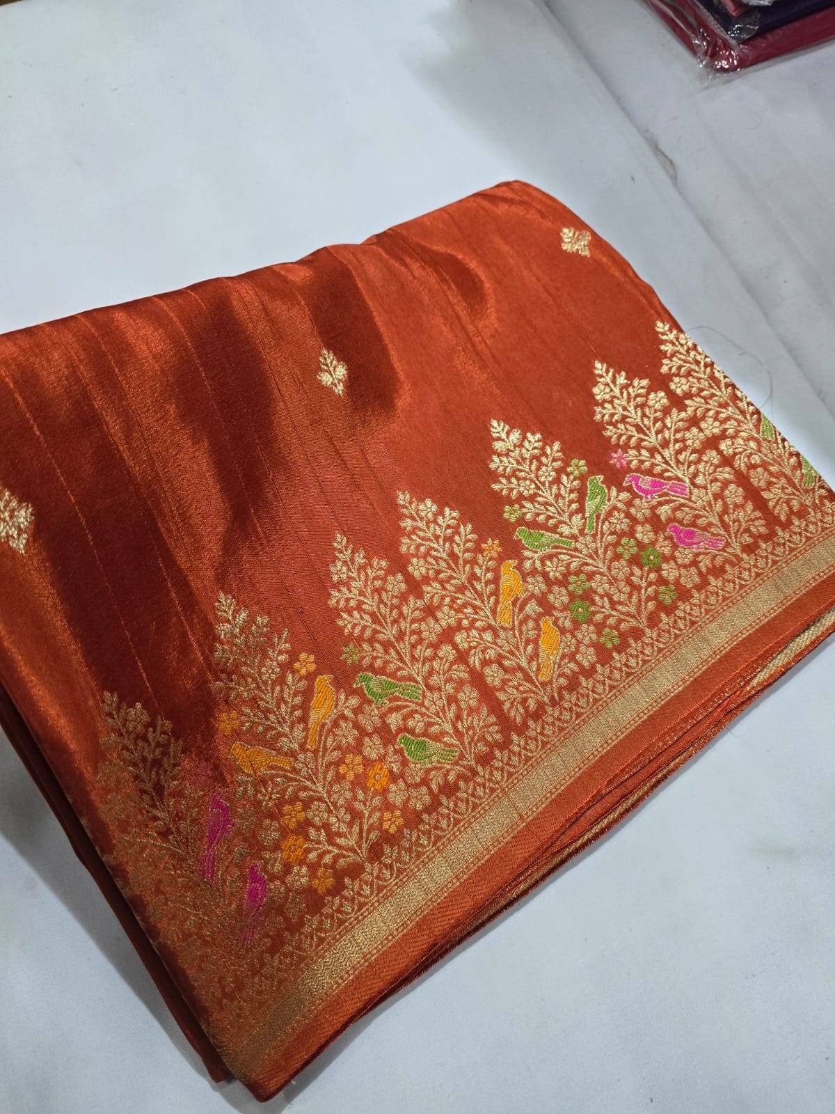 This stunning collection is perfect for every occasion, blending traditional craftsmanship with contemporary design. The beautiful motifs and exquisite finishes on the sarees not only enhance your attire but also make a statement of sophistication.