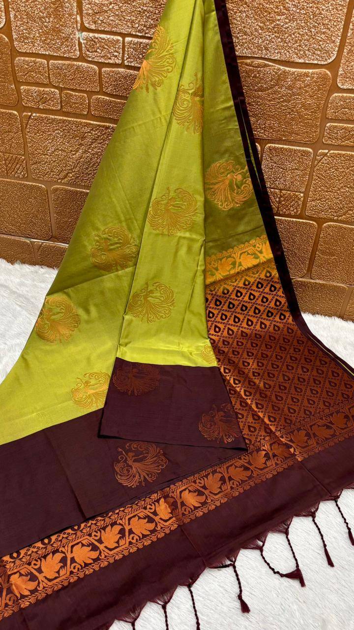 Yellow Gree and Brown Kanchipuram Elite Silk Sarees