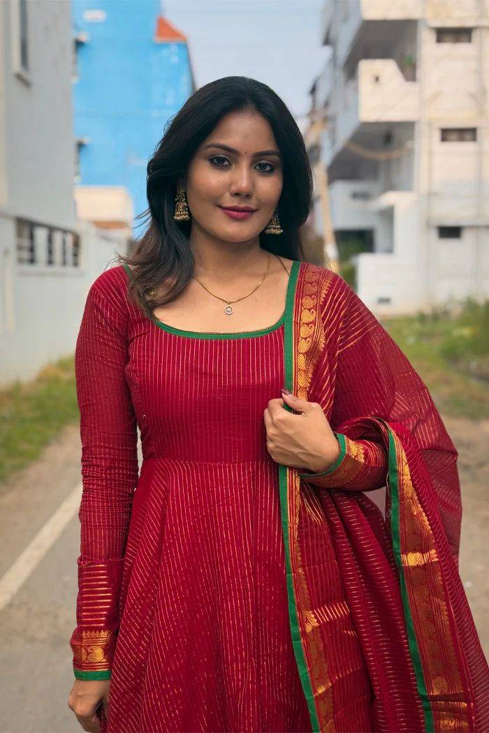 This top made from Kota banarsi fabric with Jacquard weaving zari border And Duppatta with lace border